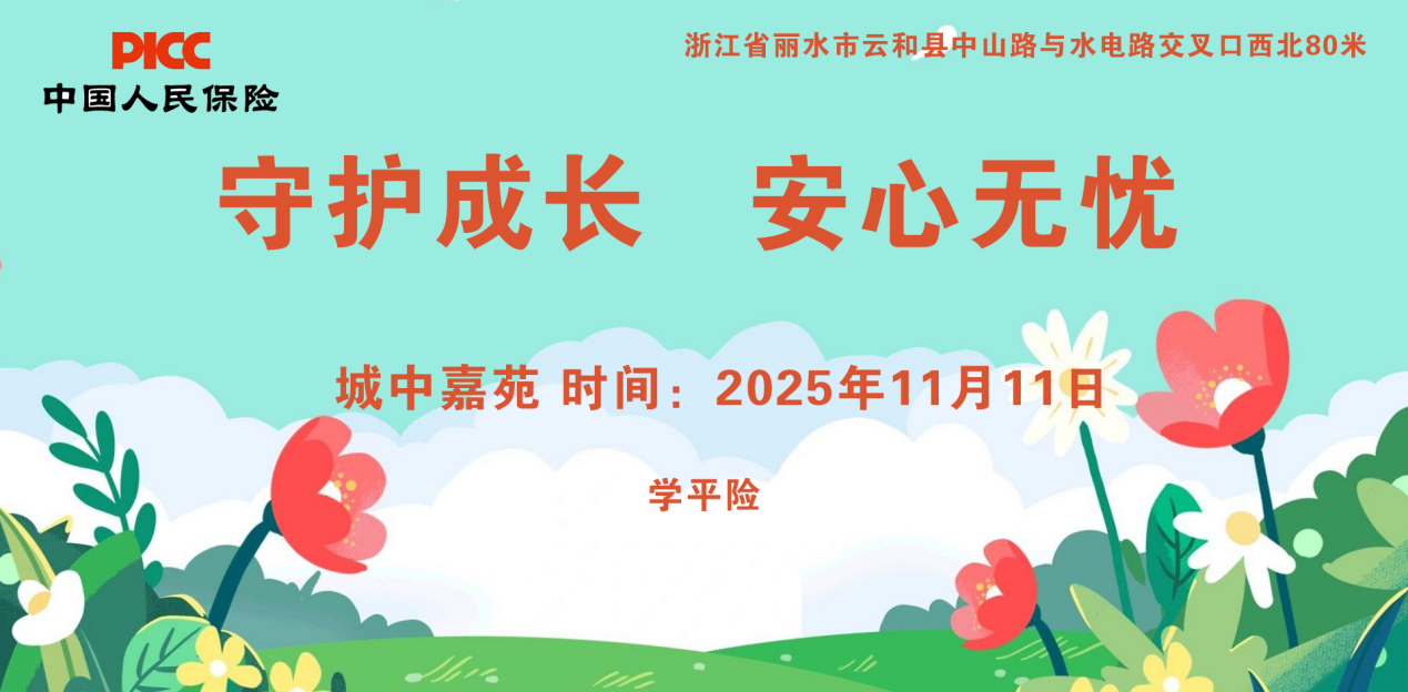 孩子踏入校园,探索知识与友谊的同时,意外风险也可能悄然降临——体育课扭伤脚踝、课间玩耍磕碰擦伤、突发感冒发烧需住院治疗,这些突如其来的状况不仅让孩子遭罪,也给家庭带来不小的经济压力。 学平险的保障范围十分贴合学生日常场景,堪称“校园风险全覆盖”。首先是意外身故/伤残保障,若孩子因校园内外意外导致身故或伤残,可获得相应赔付,为家庭撑起基础风险防线;其次是意外医疗保障,无论是校园内的磕碰、校外的交通意外,还是意外导致的门诊、住院治疗费用,都能按比例报销,解决“小伤小痛也花钱”的烦恼。 由丽水人保财险主办的守护成长,安心无忧-城中嘉苑站即将来袭,将带领您在轻松愉快的氛围中了解保险知识,感受我们的用心与专业。 正值新学期投保旺季,建议各位家长结合孩子的年龄、校园环境和家庭需求,挑选保障责任全面、理赔服务优质的学平险产品。 活动时间:2025年11月11日 活动地点:浙江省丽水市云和县中山路与水电路交叉口西北80米 主办方:中国人民财产保险股份有限公司云和支公司