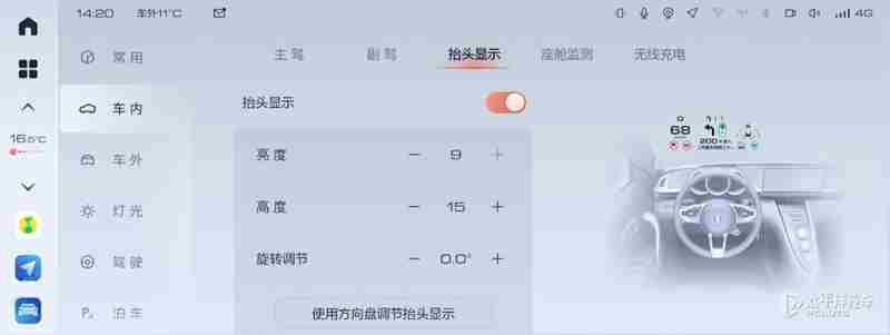 作为运动型轿跑,闪电猫在共享核心升级内容的基础上,额外对W-HUD功能全面升级。基本行车信息中,新增挡位显示与自动驻车激活状态图标,用户无需低头即可掌握车辆状态。导航信息的强化让高速出行更从容,导航车道线、路名、出入口信息清晰投射,红绿灯倒计时同步显示。