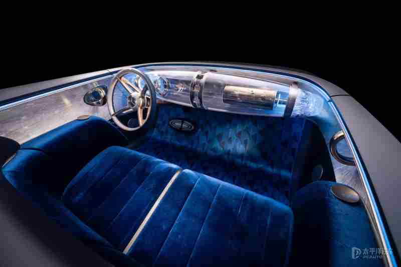 在内饰方面,则是采用了装饰艺术(Art Deco)风格为灵感,展现精湛工艺与专属材质,仪表台中央的“齐柏林(Zeppelin)”悬浮式玻璃结构,同时实现经典指针与数字仪表屏的功能性。