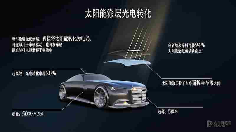 在创新技术方面,梅赛德斯-奔驰则是采用了太阳能模块涂覆于车身,这种光伏活性表面可适配各种基底。当Vision Iconic概念车的整车表面都涂覆太阳能涂层时,可通过太阳能为车辆增加续航。在理想条件下,11平方米太阳能涂层每年产生的能量可增加12000公里续航,太阳能电池拥有高达20%的效率,即使车辆处于熄火状态时也能持续发电。