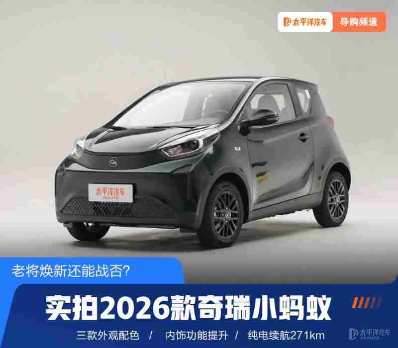 实拍2026款奇瑞小蚂蚁 配色丰富/271km纯电续航 财经生活网 2026-01-10 12:27:37 【太平洋汽车 新车频道】在目前纯电代步小车百花争鸣的时期,奇瑞新能源可以说是这个级别下最大功夫的品牌。同时要数品牌里的小蚂蚁(询底价|查参配)车型是最受消费者认知。本次为了进一步顺应市场发展需求,奇瑞小蚂蚁迎来了26款产品的更新。那么新车有什么亮点?接下来就带大家盘一盘。