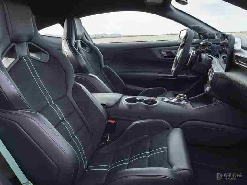 内饰方面,新车采用Mustang GTD同款平底方向盘,带12点方向标记和性能控制按钮,配以Alcantara面料与碳纤维装饰。赛道性能包提供了Recaro的皮革纤维座椅,搭配太空灰或青柠色装饰点缀,并以储物架取代后排座椅。