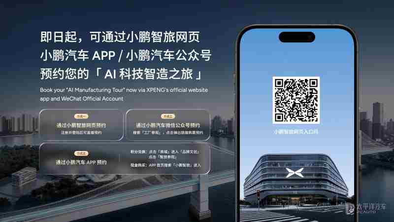 与此同时,小鹏汽车董事长兼CEO何小鹏在现场宣布,小鹏汽车的工业旅游项目——“小鹏AI科技智造之旅”正式对公众开放。即日起,公众可通过小鹏汽车APP、小鹏智旅网页或小鹏汽车微信公众号预约,亲临小鹏全球总部、广州及肇庆智造基地两大探索中心。