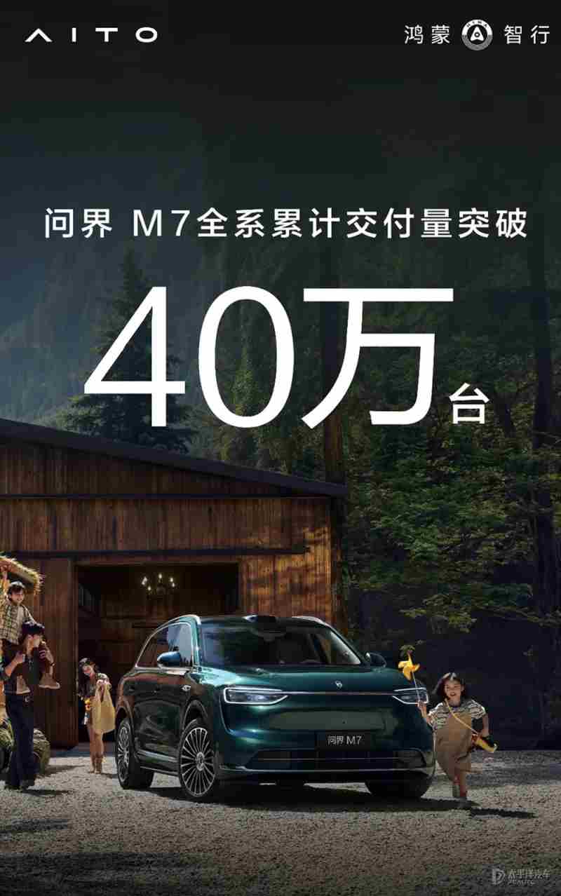 【太平洋汽车 新车频道】近日,鸿蒙智行官方宣布,问界M7(询底价|查参配)全系累计交付突破40万台!同时宣布增程长续航版同步开启预订,其中M7 Max五座版预售价29.98万元,M7 Max六座版预售价31.98万元,即可下订立享2000元抵5000元权益。