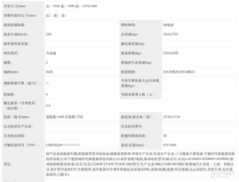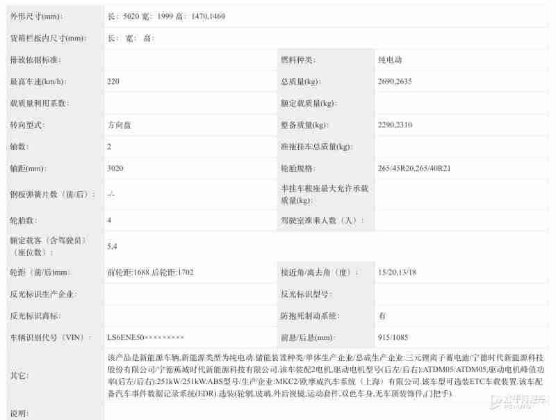 纯电动双电机版本,驱动电机峰值功率(后左/后右)达251kW/251kW。