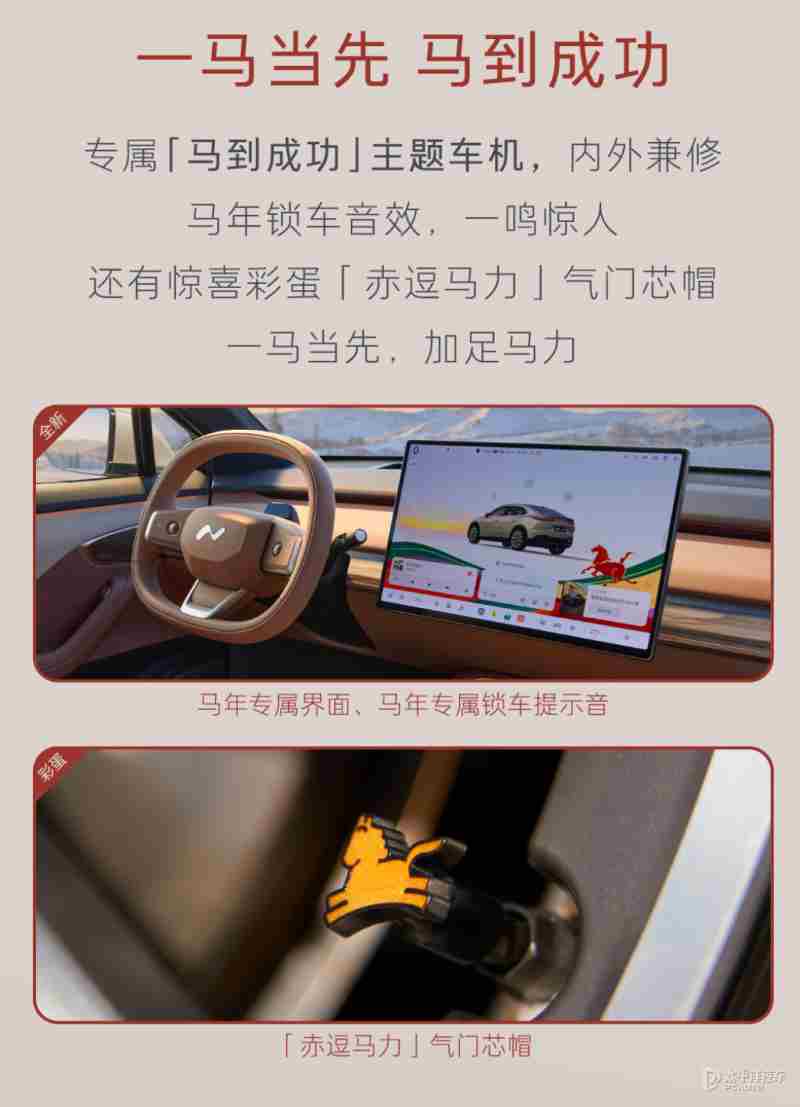 新车在迎宾踏板、座椅头枕等座舱触点融入专属马年标识,还有马年专属界面和马年气门信帽,进一步强化车型的独特属性与专属质感。