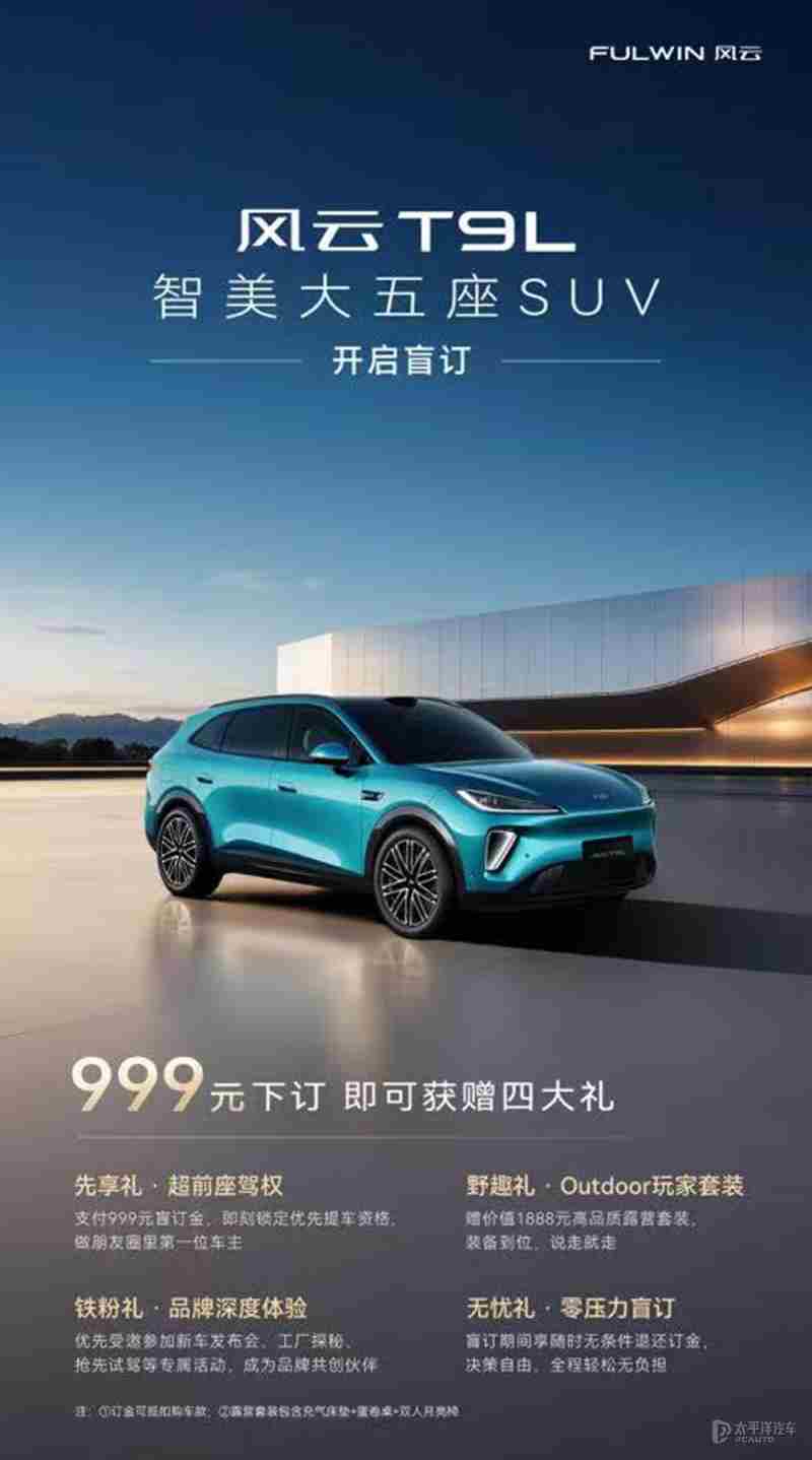 【太平洋汽车 新车频道】1月17日风云T9L(询底价|查参配)正式开启盲订,999元就可下订。新车搭载鲲鹏AI超能电混CDM 6.0和配备鹰700+智能辅助驾驶系统,计划在春节后上市。