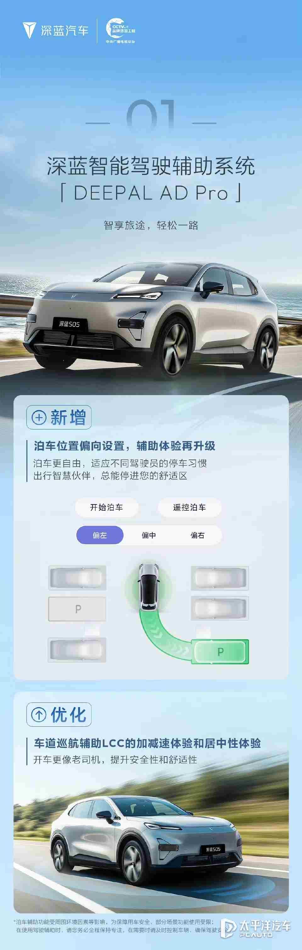 此次深蓝S05新增功能包括泊车位置偏向设置、CarPlay、“妥妥帖”应用以及应用商城“翼擎车模”等;至于优化项目,则主要涉及车道巡航辅助LCC的加减速体验和居中性体验,并且车辆还针对哨兵模式增加了图像检测和雷达感知,让其监测更精准。