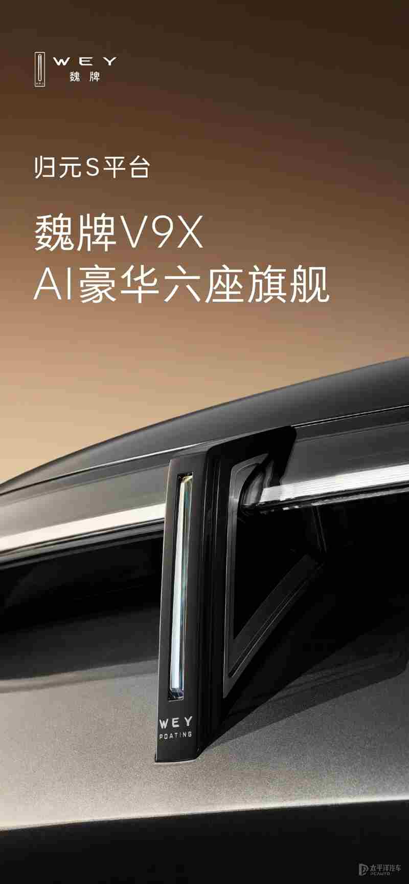 【太平洋汽车 新车频道】1月28日,长城汽车董事长魏建军在社交媒体分享一段魏牌全新旗舰SUV的预告视频。新车命名为魏牌V9X,基于归元平台高端序列归元S打造。新车预计其将拥有将近5.3米的车长,内部预计采用2+2+2座椅布局。动力部分有望搭载2.0T发动机组成的插混系统。