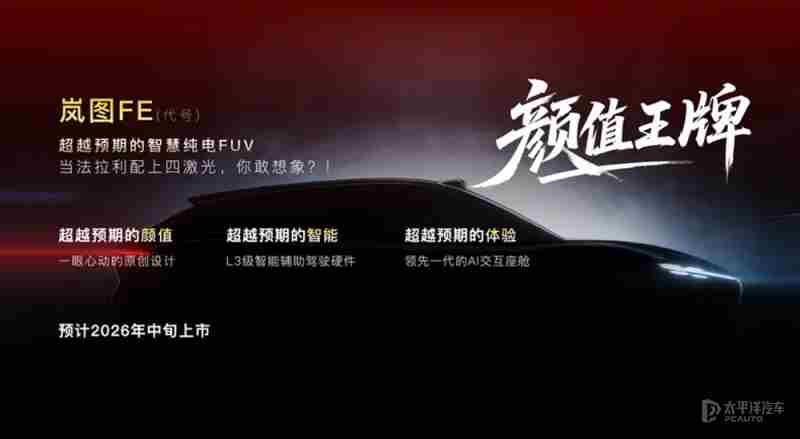 最后岚图汽车联合华为乾崑将在2026年中旬推出代号为“岚图FE”的全新FUV,新车依旧搭载四激光雷达感知系统、L3级智能辅助驾驶硬件、以及领先一代的AI交互智能座舱。