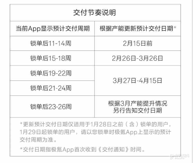 由于极氪9X Hyper版/曜黑版前期积累的锁单量远超预期,仍需消化前序积压订单,同时因个别专用核心零部件短期供应量波动,部分订单的交付时间将受到影响,当前已锁单订单的预估交付节奏如上图所示。