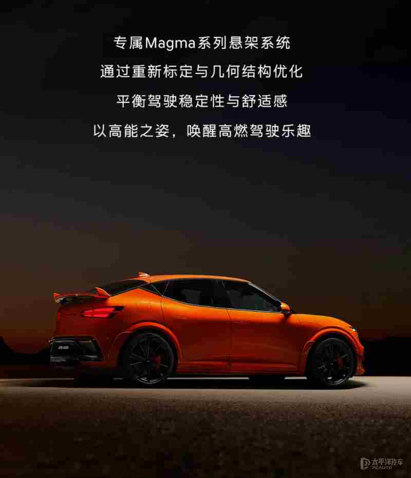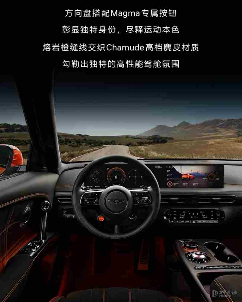 内饰方面,车内采用Chamude高档麂皮材质包裹座椅、车门和中控台,配以Magma主题的缝线和细节点缀。方向盘采用三幅式,配备一键Boost模式,可瞬间提升电机输出功率,提升性能。车内还保留了多种实体按键,方便在激烈驾驶时盲操。