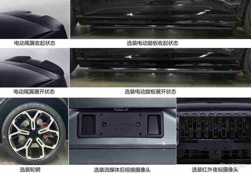 同时,新车还可选装后视镜底座、后保险杠侧饰条、门板下饰条、前徽标、窗框饰条、行李架及门把手饰条、尾部字标、前格栅及前保险杠下饰条、后保险杠下饰条、牵引专用装置、电动踏板、轮辋、卡钳、翼子板摄像头装饰罩和流媒体后视镜摄像头等。