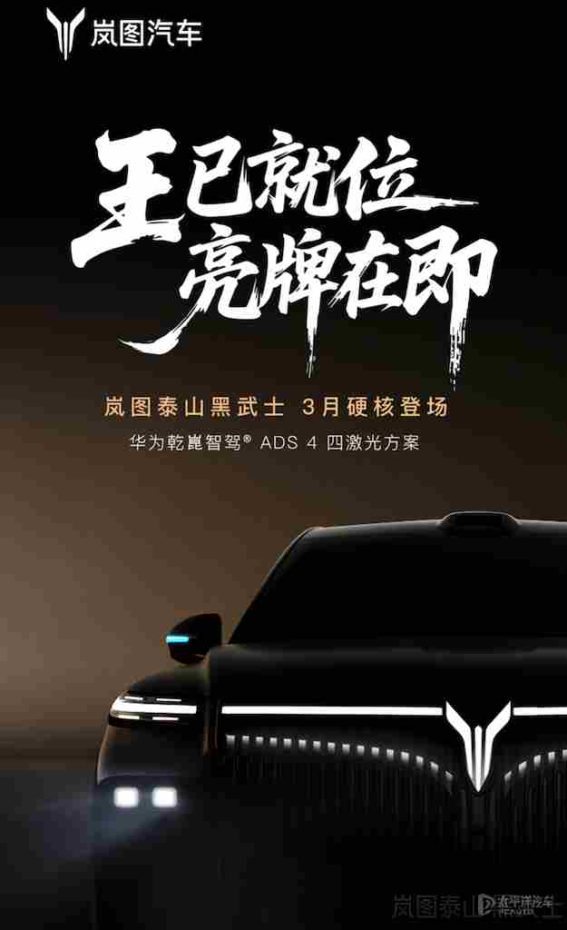 【太平洋汽车 新车频道】2月9日,从岚图汽车官方获悉,旗下旗舰SUV——岚图泰山黑武士版将于今年3月正式登场,并且会限定发售,该车此前已公布价格,售价为50.99万元。作为岚图泰山顶配版车型,新车采用了专属外观套件,内饰提供专属方案,并搭载华为乾崑智驾四激光感知方案,具备L3级有条件自动驾驶能力。