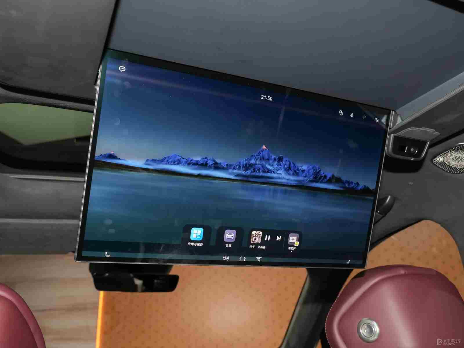 此外,参考现款泰山Ultra版,其配有32扬声器音响系统、后排21.4英寸吸顶屏,二排双AI云舒零重力座椅、二排座椅扶手3.5英寸液晶屏(可控制座椅、空调、多媒体等功能)、前后排多层隔音玻璃、后排侧隐私玻璃、主动降噪、前两排座椅加热/通风/按摩、第三排座椅加热/通风、智能香氛系统、车载冷暖冰箱等豪华配置。